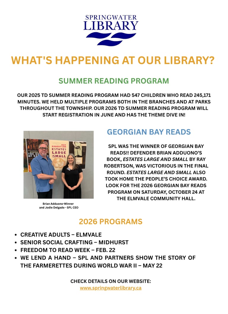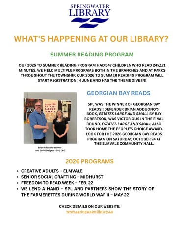Springwater Public Library Press Release – June 1, 2024